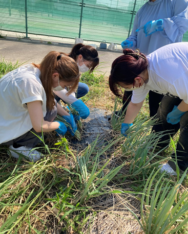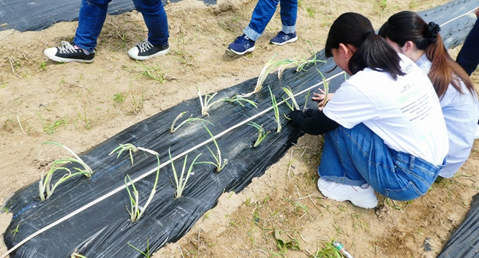 3年後の2011年に、現在所属している愛知学泉短期大学食物栄養学科に移り現在に至っています。所属の食物栄養学科は、栄養士養成の学科で、担当科目は食品学、調理科学、食品材料実験などです。研究については、アナアオサの食利用について研究を進め、「うどん麺への凍結乾燥アナアオサ粉置換の影響」、「アナアオサ粉置換量が食パンの抗酸化性、力学的物性および嗜好性に及ぼす影響」について論文にまとめることができました。また、地域の特産物の付加価値を見出すことを目的に、未使用資源の食品や地産野菜について成分分析や官能評価を行い論文にまとめています。 その他、食品ロス削減レシピ開発、地産野菜のレシピ開発など地域連携の取り組みを行っています。特に岡崎の特産品である、むらさき麦、法性寺ねぎ、黒米・赤米、筆柿、いちごなどの成分分析、物性測定、嗜好調査、官能評価などを行って、学生と共に新たな食品としての利用を考えています。これらのことを通じて、学生が栄養士として自分で考え行動し、柔軟に対応できる人材に育ってほしいと思い取り組んでいます。その中で、地域の食材や野菜について知らない学生が多いことを感じていました。そんなおり、2023年に岡崎農遊会から愛知の伝統野菜である岡崎の「法性寺ねぎ」栽培の依頼を受けたことがきっかけで、食品材料実験の授業の中で、野菜作りを取り入れました。野菜作りのポイントや有機農業についての講義を受けながら実習を行っています。写真は植え付けと収穫の様子です。